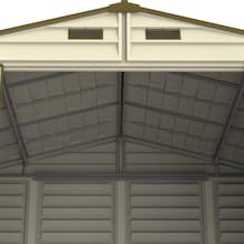 • Duramax WoodSide 10 x 8 (8.02 m2) Plastic Garden Shed with 3 Fixed Windows & Metal Foundation Kit, Strong Metal Roof Structure Fire Retardant and Maintenance-Free Storage Shed - Ivory/Brown