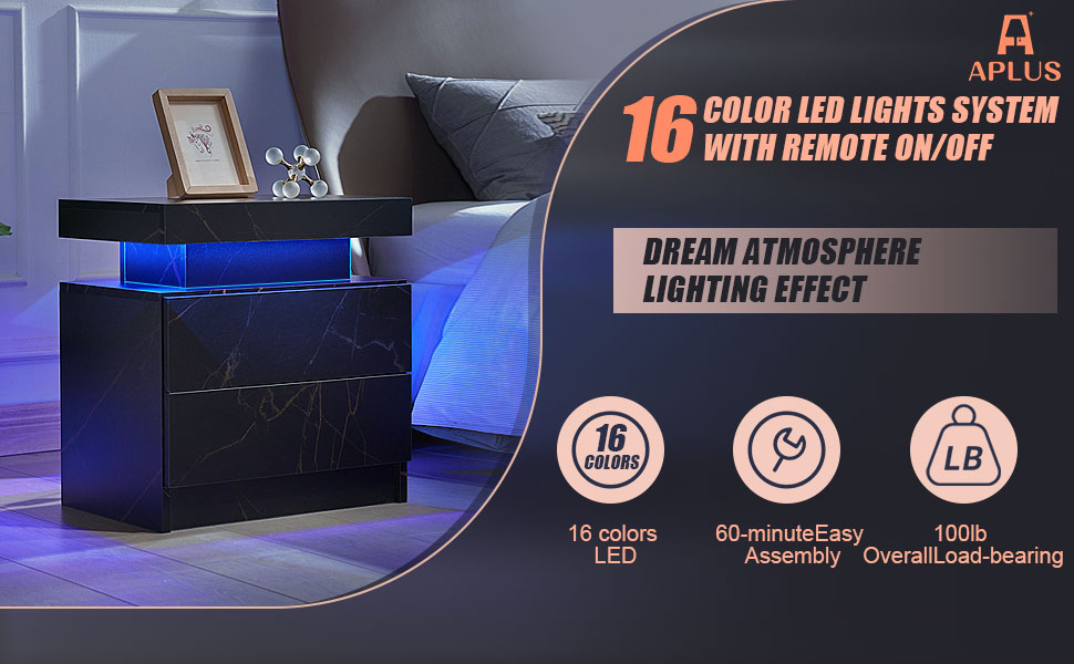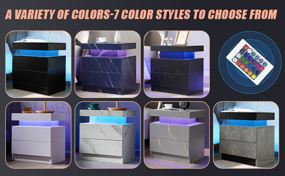 • 【Furniture】Nightstand Set of 2 LED Nightstand with 2 Drawers, Bedside Table with Drawers for Bedroom Furniture