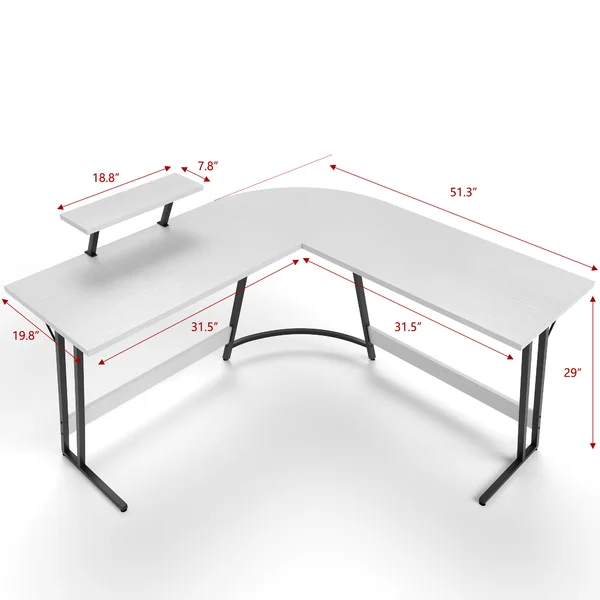 The modern design style gaming desk makes the most use of your space, easy to fit snugly in a corner to maximize your limited space. The detachable monitor stand reserves more space for your desktop, which greatly improves the utilization rate of the desktop. L- shaped desk constructed by high-quality MDF board and metal frame, ensure stability and durability with long-time use. Adjustable foot support ensures the stability of the whole table. Suitable for gaming room, study, office, bedroom, dormitory, and another indoor environment.