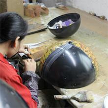 After molding consistently round hemispheres, artisans apply map gores to our bar globe by hand. These individual slices of replica Italian maps cover both the interior and exterior of the liquor cabinet.