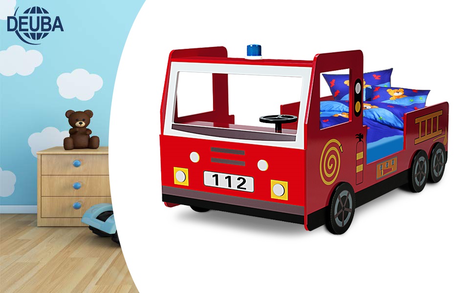 • SLEEP SAFELY: A child-friendly, large bed with a fire brigade theme that children will love to sleep in. Clever elevations on the sides protect against falling out, and rounded edges also make the bed safe for playing.