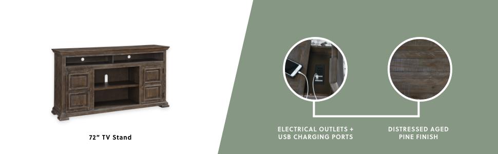Inspired by heavy and hearty lodge-style furnishings from days gone by, the Wyndahl lift top coffee table brings the past brilliantly into the present. Distinctive details include robust mouldings, raised drawer fronts for rich dimension and a distressed aged pine color finish with light wire-brushed texture that’s pure artistry. The table’s spring lift top—perfect for impromptu meals and laptop work—makes this yesteryear-inspired piece made for the here and now.