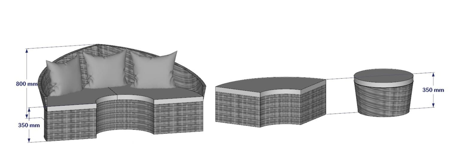 - Depth without table and stools: approx.81cm